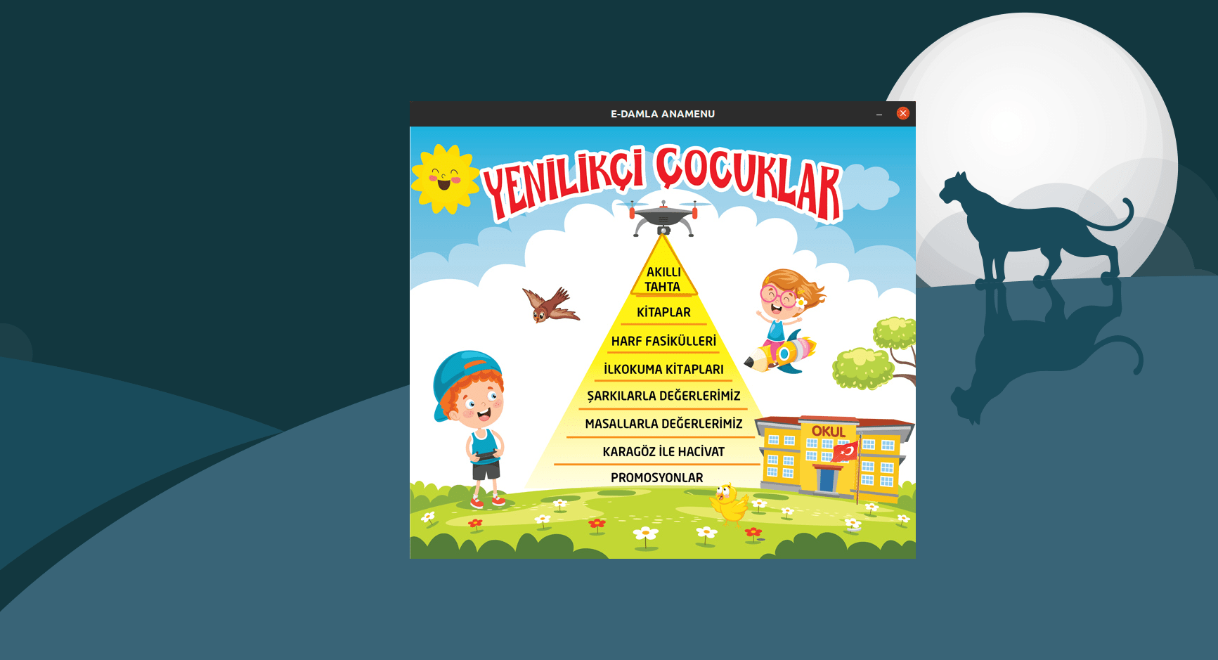 Damla Yayınevi'nin Dijital Eğitim Platformu olan "E-Damla" ile Dijital Kitaplar, internet bağlantısı olmasa bile içeriklere ulaşılabileceğiniz şekilde hazırlanmıştır. Hem Pardus projesine, hem de okullardaki eğitim-öğretim hayatına destek olmak amacıyla, dijital kitaplarımız öğretmenlerimiz için ücretsiz olarak Pardus işletim sisteminde bulunan Pardus Yazılım merkezine yüklenmiştir. Kullanıcı Dostu arayüzümüz ile eğitimde dijitalleşme sizleri bekliyor. Bu Dijital Kitapda; her harfe hazırlanmış birbirinden eğlenceli videolar ve animasyonlar, etkinlikler, alıştırmalar... Hepsi ve daha fazlasıyla donatılmış "Dijital Kitap"ı sizlerin kullanımına sunmaktan dolayı gurur duyuyoruz.
