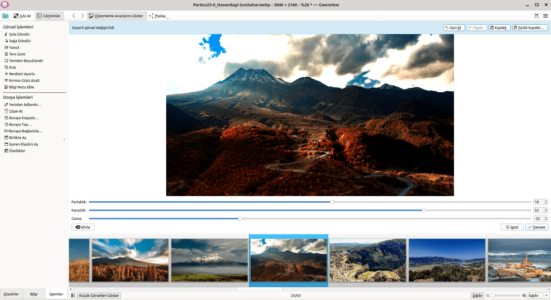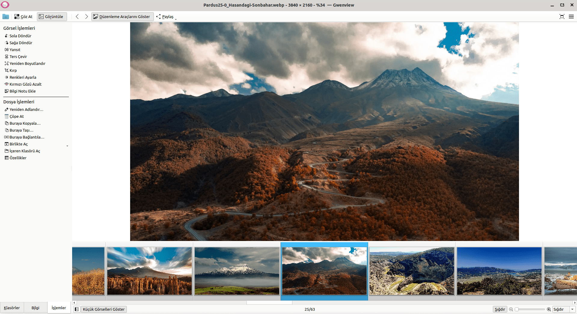 Gwenview, KDE tarafından geliştirilen hızlı ve kullanımı kolay bir resim görüntüleyicidir ve bir dizi resmi görüntülemek ve bunlara göz atmak için idealdir.