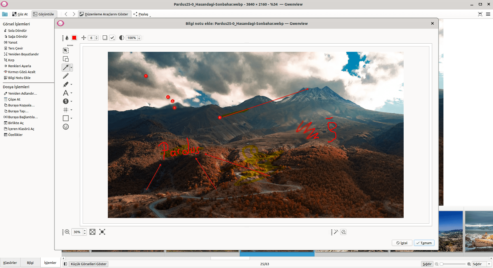 * Resimlere oklar, şekiller, metin kutuları, resim damgaları ve daha fazlasıyla açıklama ekleme ve işaretleme.
