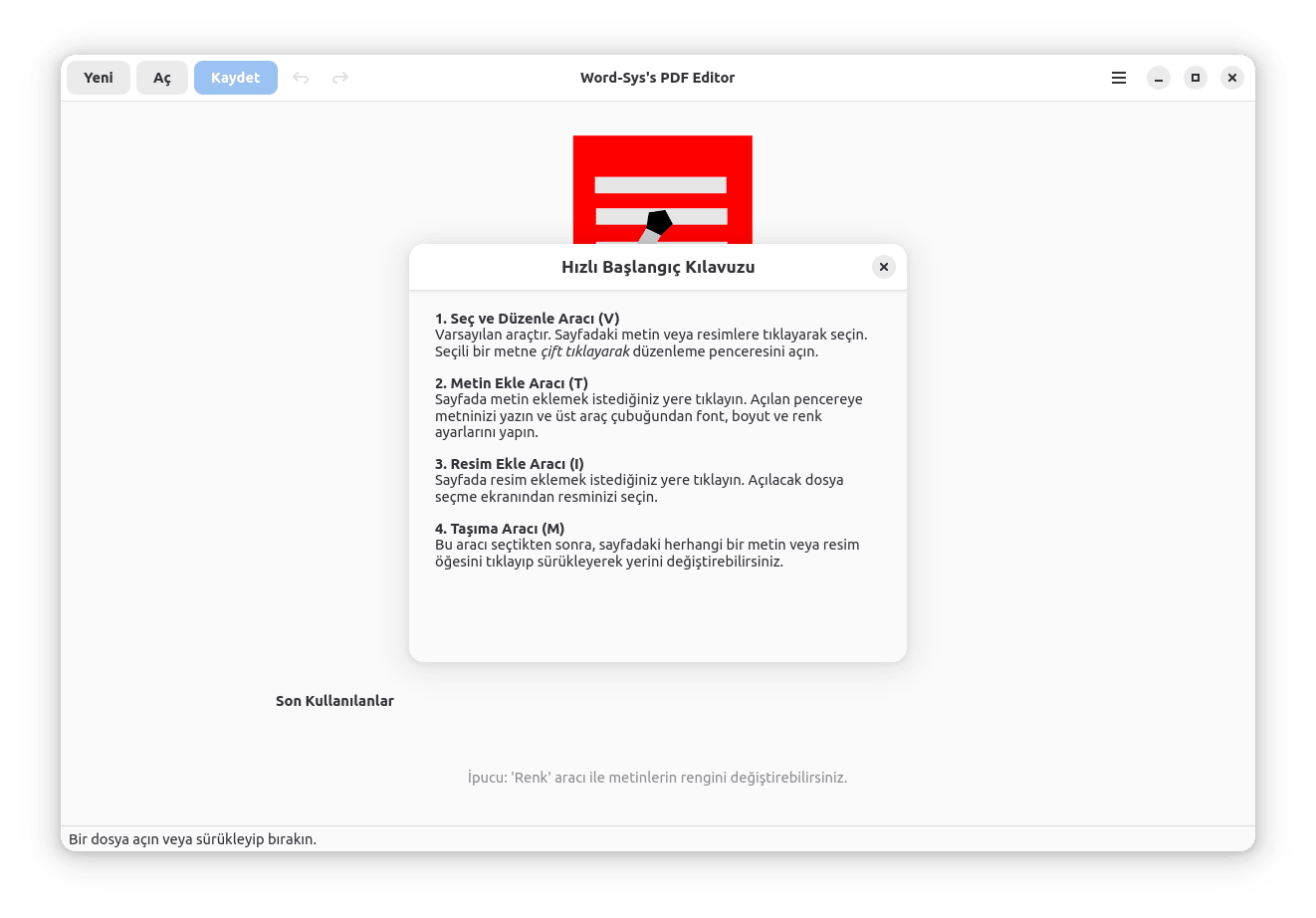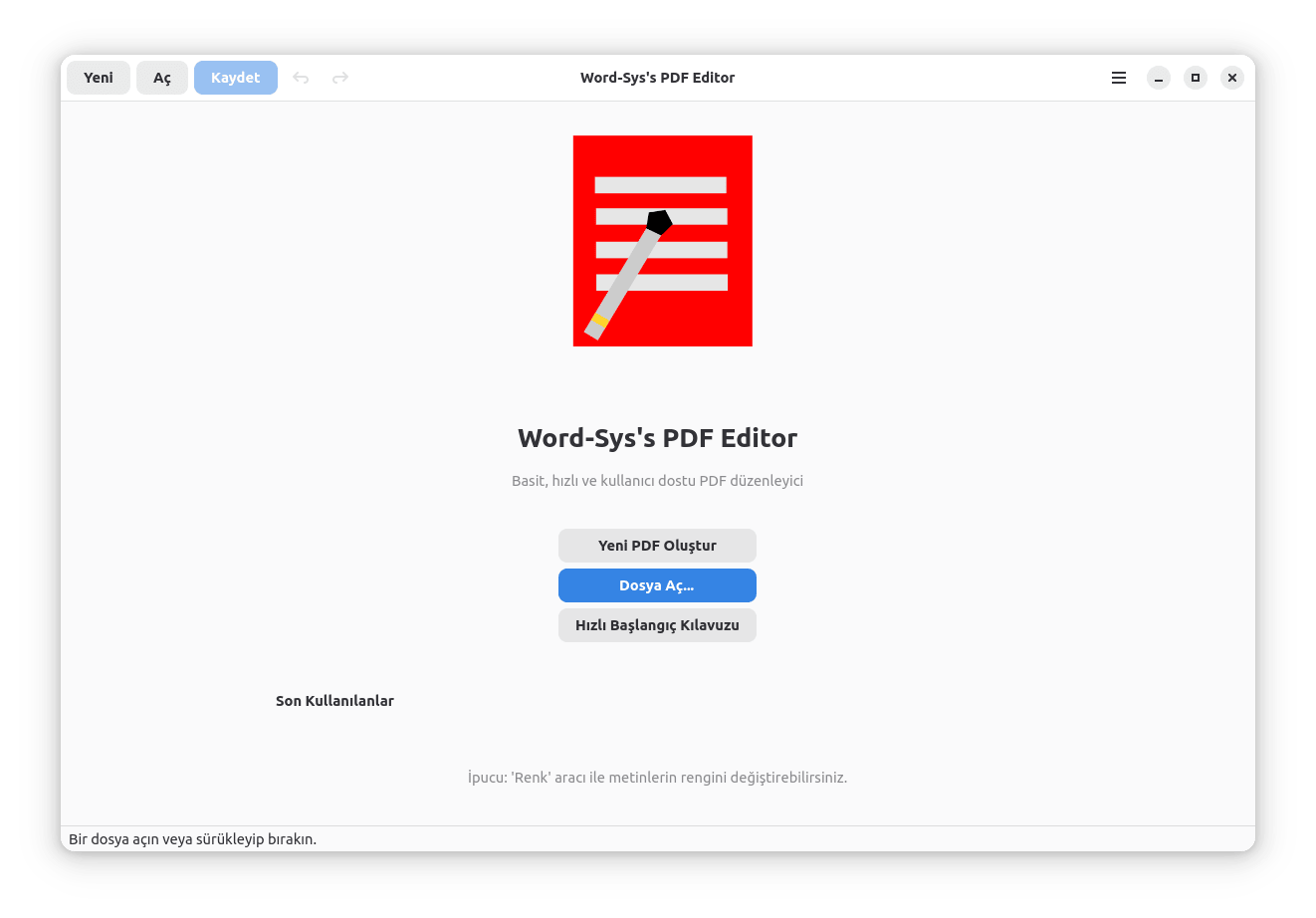 Word-sys PDF Editor, kullanıcıların PDF dosyalarını açmasına, sayfaları görüntülemesine, mevcut metin bloklarını seçmesine, değiştirmesine veya silmesine ve yeni metin blokları eklemesine olanak tanır. Tam PDF açıklamaları veya yapısal değişikliklerden ziyade basit metin içeriği manipülasyonuna odaklanır. Ayrıca DOCX (LibreOffice gerektirir) ve TXT formatlarına da dışa aktarabilir.
